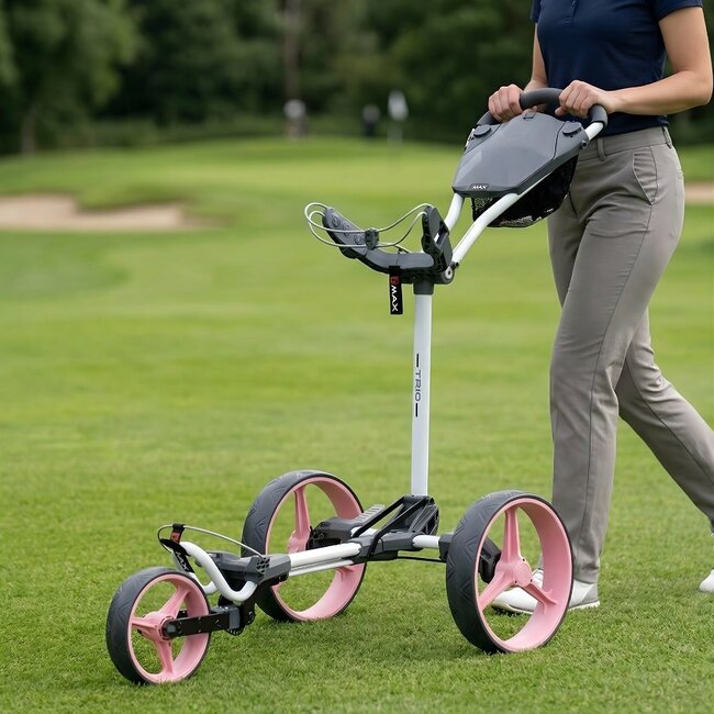 De Big Max Blade Trio 3 Wheel Trolley in de kleur wit roze de ultieme trolley voor elke golfer. Met zijn innovatieve design en geavanceerde functionaliteit is deze trolley de perfecte metgezel voor jouw golfuitrusting.