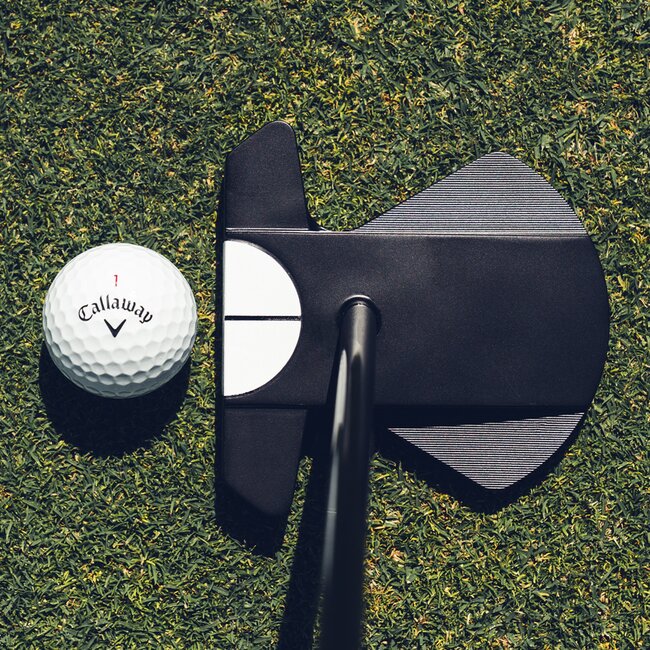 Het opvallende ½ Ball alignement-systeem op de bovenkant van dit model omlijst de bal visueel bij adresseren zodat je makkelijker je aim kunt centreren. Die visuele cue draagt bij aan vertrouwen in de setup en kan je helpen om preciezer te richten op je lijn vóór je stroke.