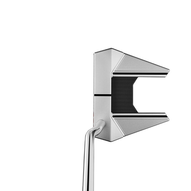 Het putterhoofd heeft een hoekig wingback mallet-profiel met langere “rails” aan de zijkanten, wat sterke visuele alignement-cues biedt bij adres en helpt vertrouwen te creëren voordat je putt begint. Daarnaast is het clubhoofd afgewerkt met een volledige Studio Carbon Steel face insert met chain-link milling, wat zorgt voor een zachte feel, aangenaam geluid en voorspelbare afstand controle bij elke putt.