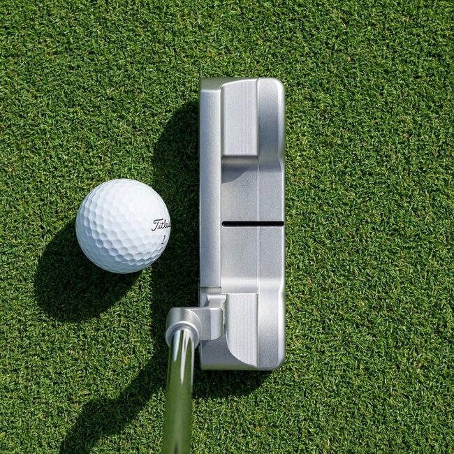 De Scotty Cameron Studio Style Newport Plus putter is ontworpen voor rechtshandige golfers die streven naar precisie en consistentie op de green. Deze putter heeft een iets breder clubhoofd dan de standaard blade-ontwerpen, wat zorgt voor een verhoogd moment van inerta (MOI) en meer stabiliteit tijdens de slag. Dit innovatieve ontwerp biedt golfers een uniek, vertrouwenwekkend zicht bij het adresseren van de bal, terwijl het de klassieke uitstraling en uitlijning behoudt die geassocieerd worden met blade-putters.